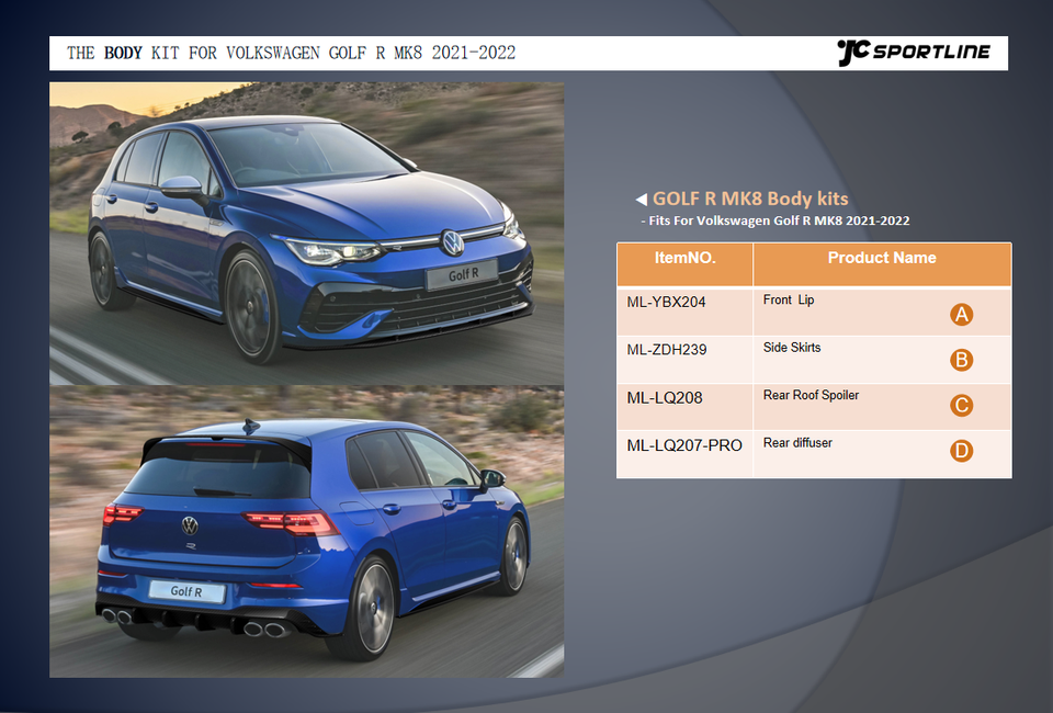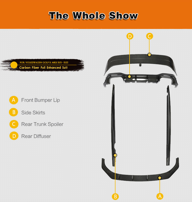 Nom du produit:Bodykit de voiture de fibre de carbone pour VW Golf 8R