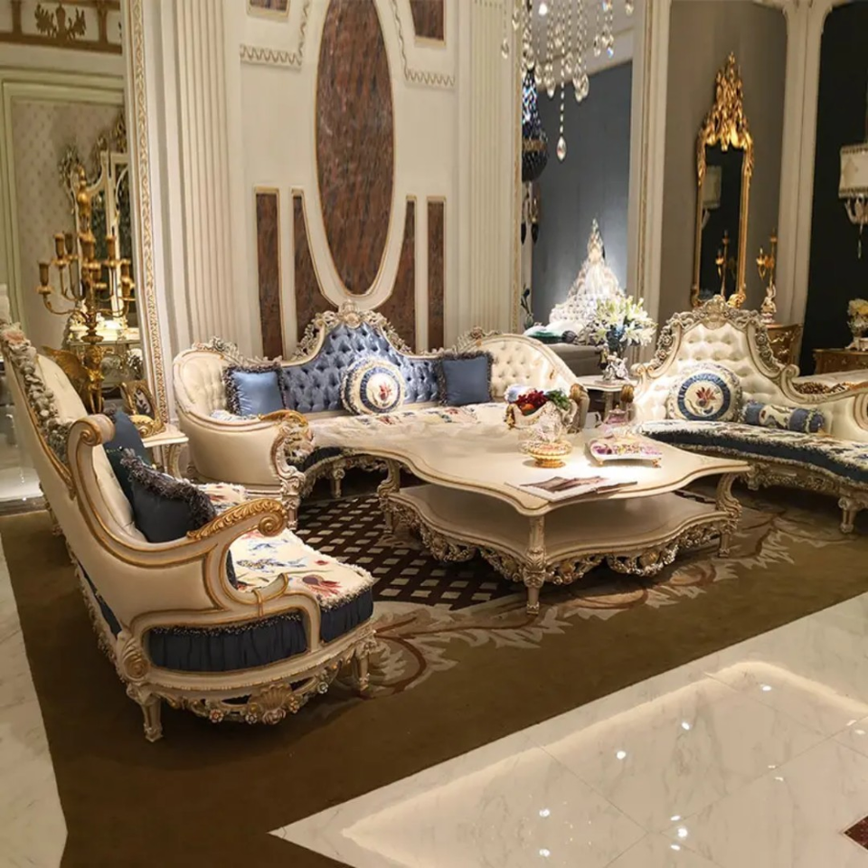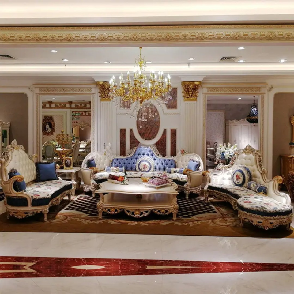 Ensemble de canapés sectionnels rembourrés de luxe en bois d'acajou massif, style français, meubles sculptés pour salon de villa, personnalisation