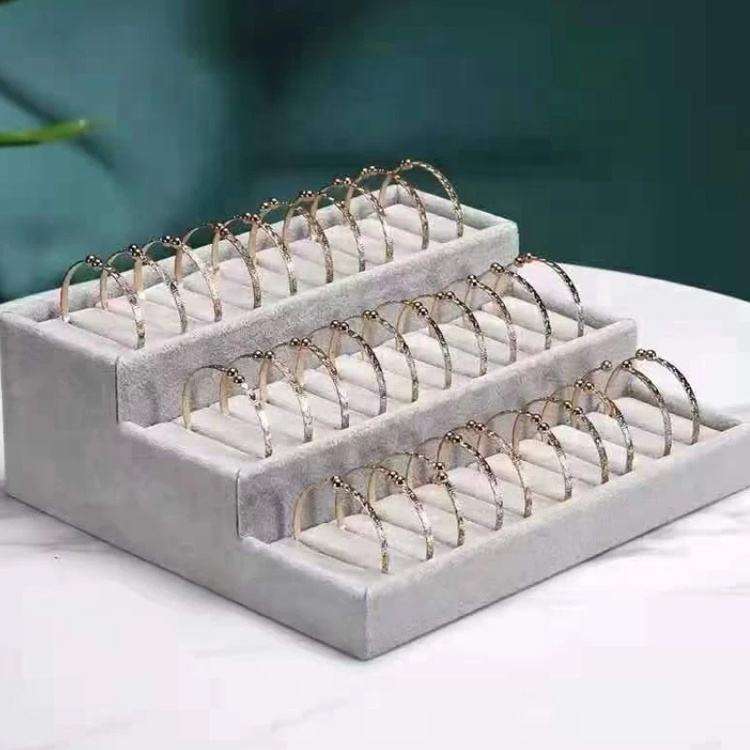 Plateau à bijoux en velours de luxe personnalisable pour le rangement et la présentation de bagues et de bracelets, idéal pour la coiffeuse ou comme boîte de rangement pour accessoires