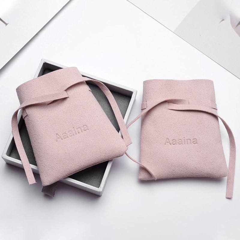 Sac à bijoux de luxe vintage en velours avec logo, à cordon de serrage, en daim, sacs cadeaux anti-poussière faits à la main, portables avec ruban à nœud