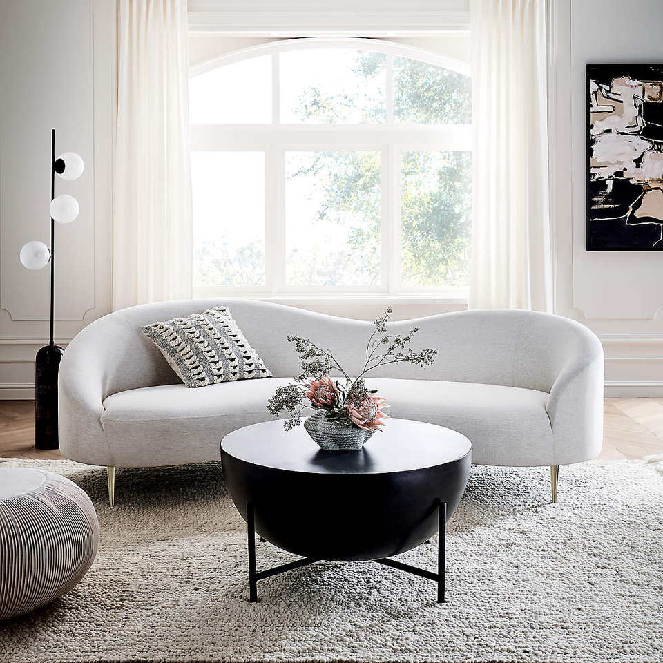 Canapé de luxe en velours texturé blanc, structure en bois durable, forme nuage, pour hall d'hôtel