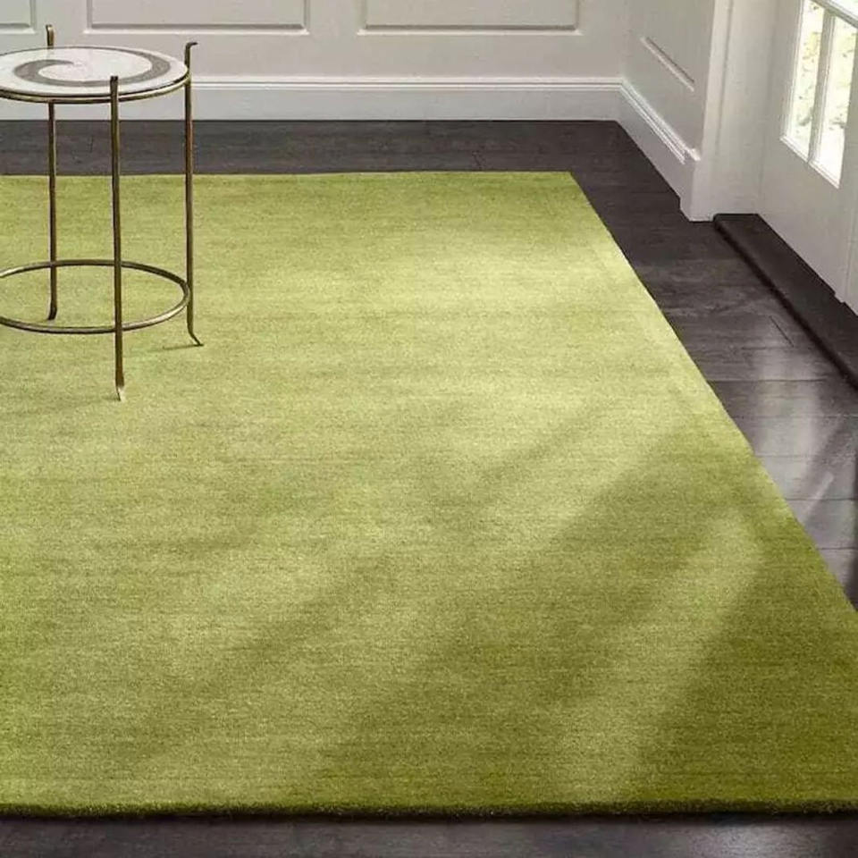 Tapis en laine verte de luxe au toucher velours | Tapis de villa anti-déchirure pour zones à fort trafic