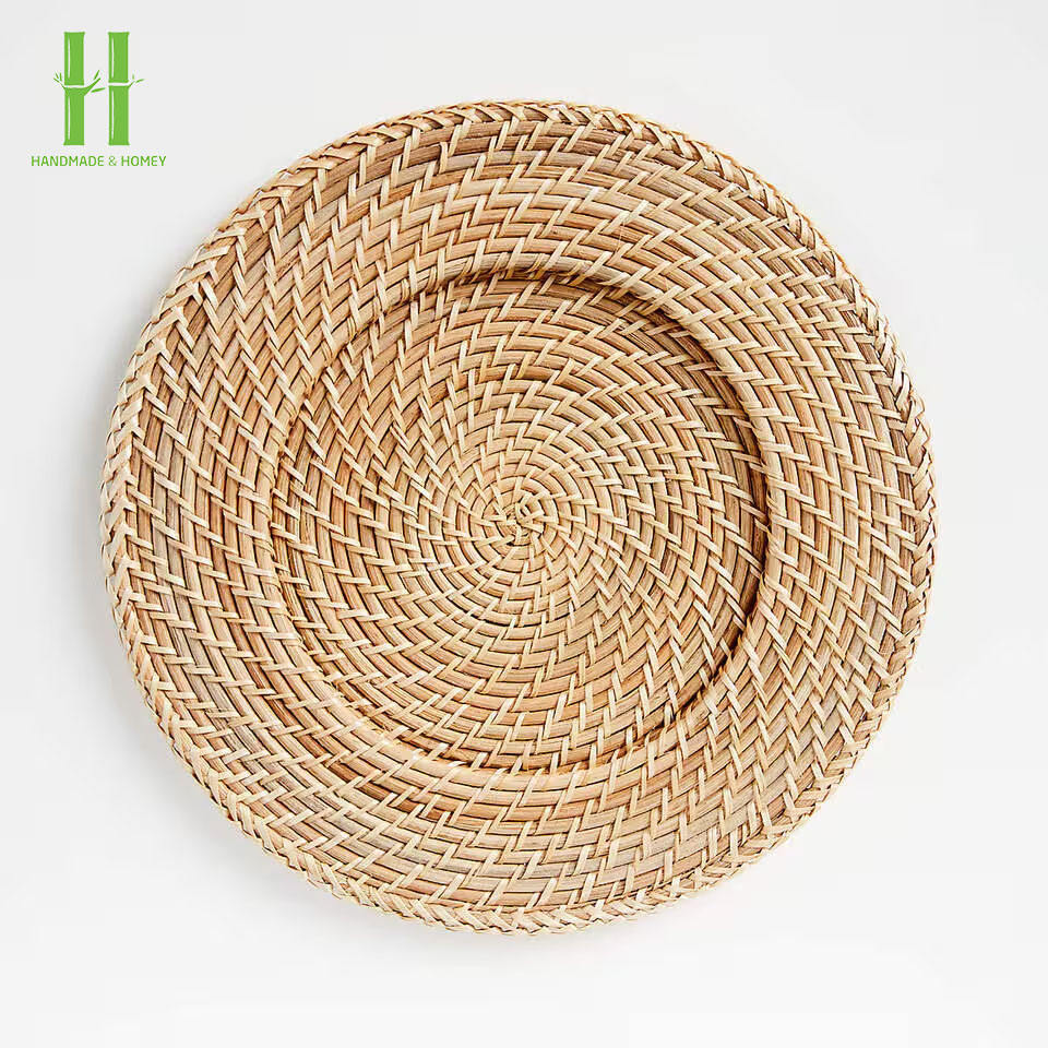 Vaisselle de luxe du Vietnam, set de table rond en rotin naturel tissé, décoration bohème en rotin pour rehausser votre expérience culinaire