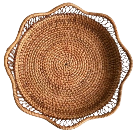 Bol en rotin tissé à la main de style Boho vintage de luxe panier rond de haute qualité pour les collations aux fruits servant un design personnalisé