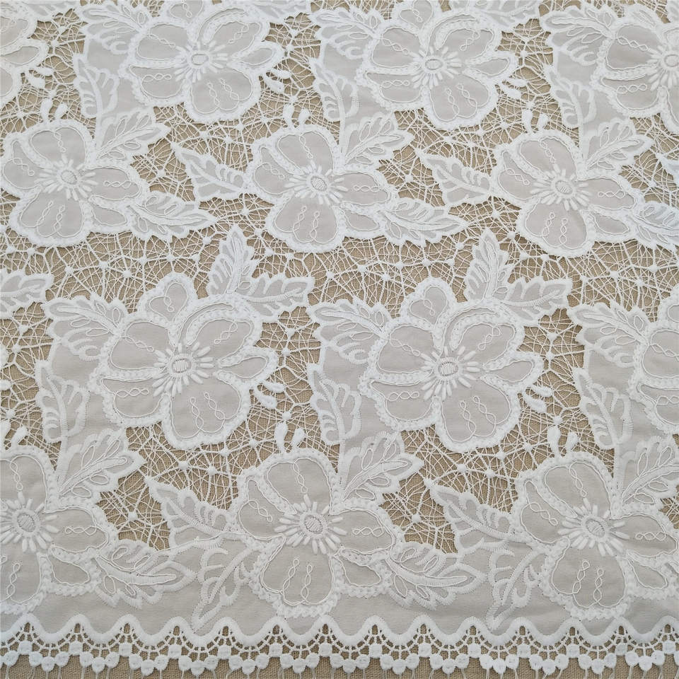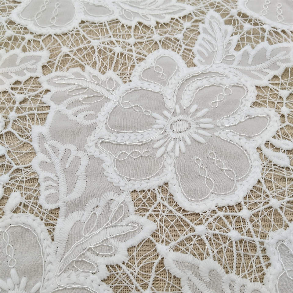 Dentelle brodée vintage de luxe, 100% polyester, tissu soluble dans l'eau pour accessoires vestimentaires, robes, vêtements et cadeaux