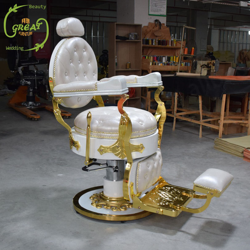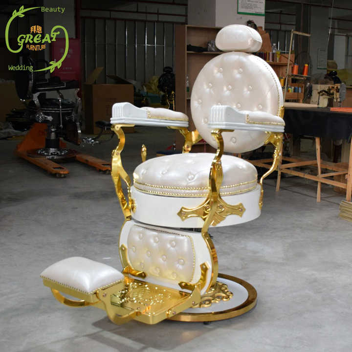 Product name:Factory Hot Sale Luxury White And Gold Barber Chair For Hair Salon