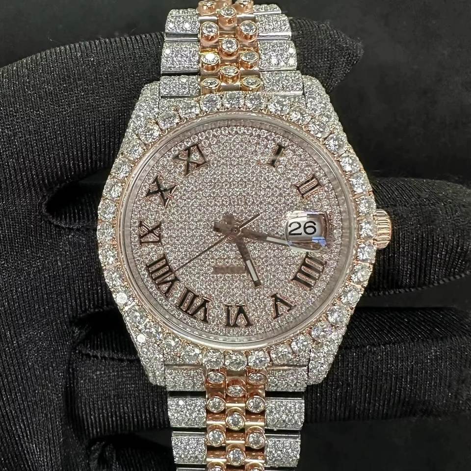 Luxury Vvs Iced Out Bling Moissanite Diamond Stainless Steel Leather Strap Factory High Quality Hip Hop Mechanical Watch Unisex
