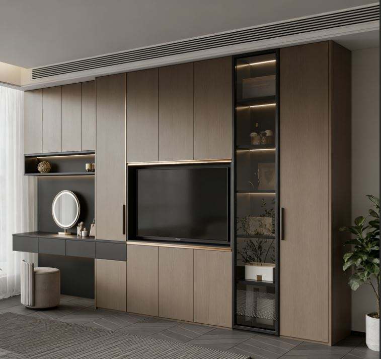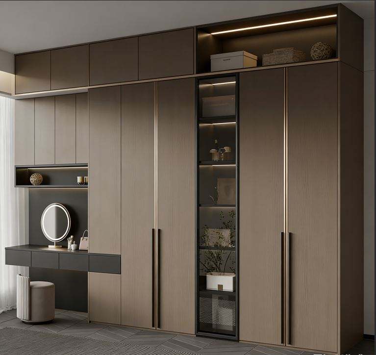 Dressing sur mesure de luxe en bois avec éclairage LED, grande capacité de rangement pour maison haut de gamme