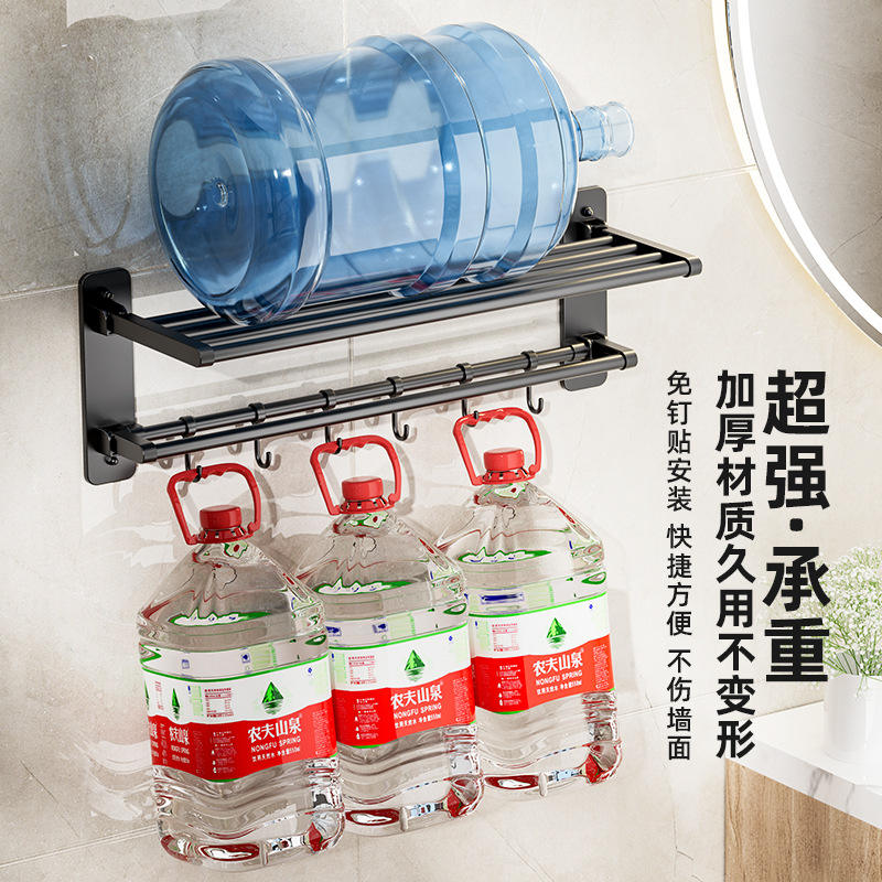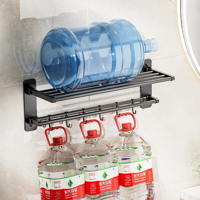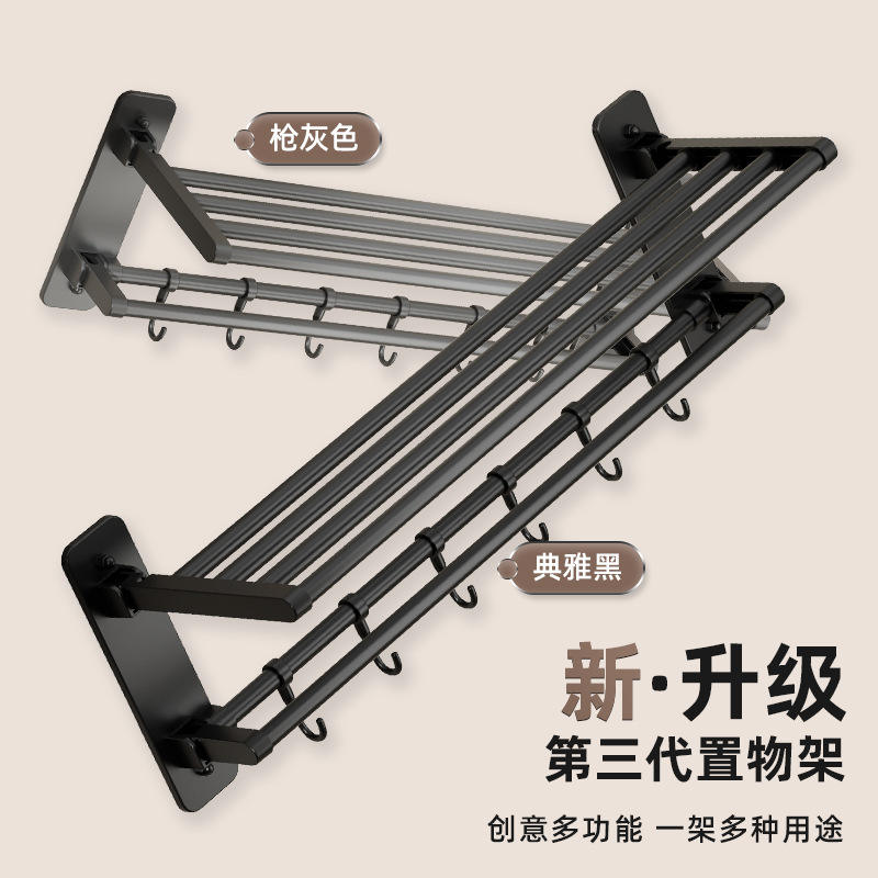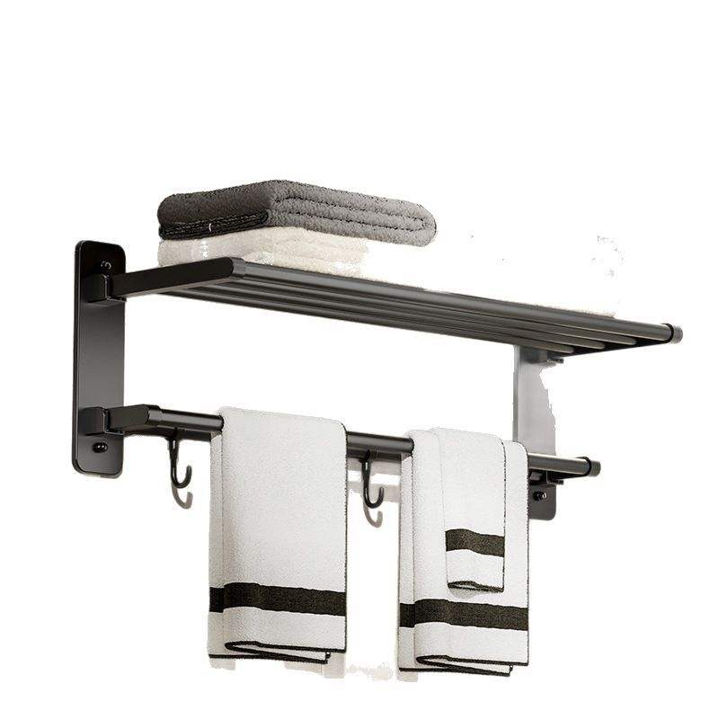 Porte-serviettes mural de luxe avec étagère et crochets, finition poudrée, rectangulaire, sans perçage, pour salle de bain et usage domestique