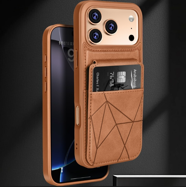 Étui de luxe en cuir PU pour iPhone 12 13 14 15 16 17 Pro Max avec porte-cartes, support pliable et protection antichoc