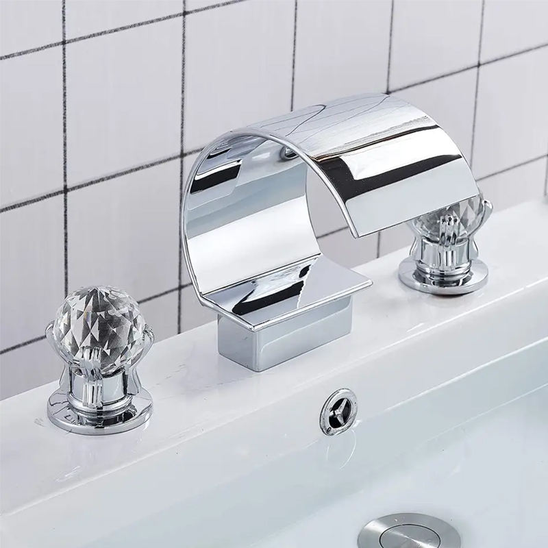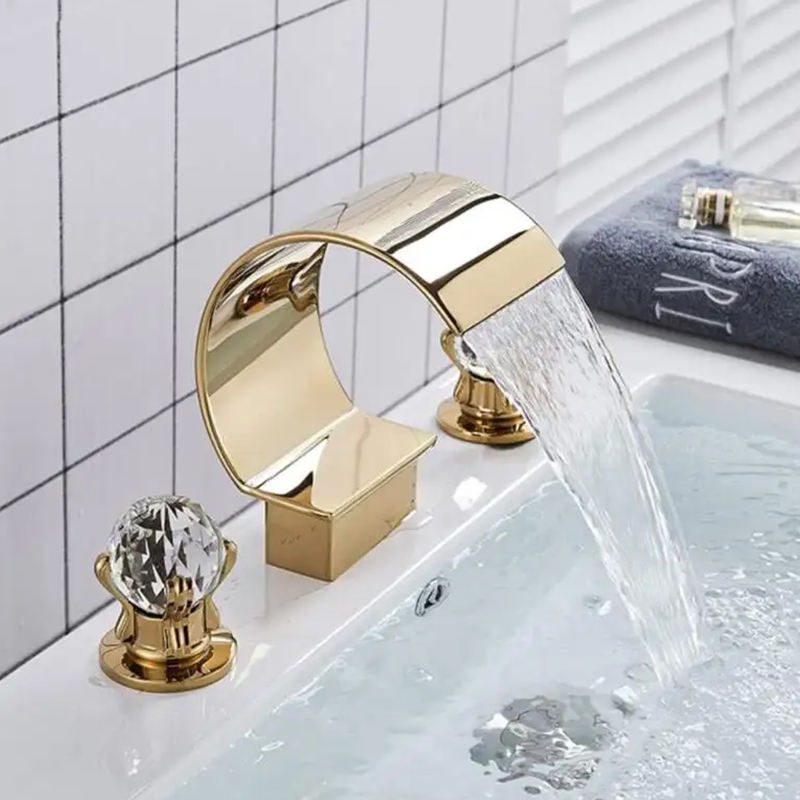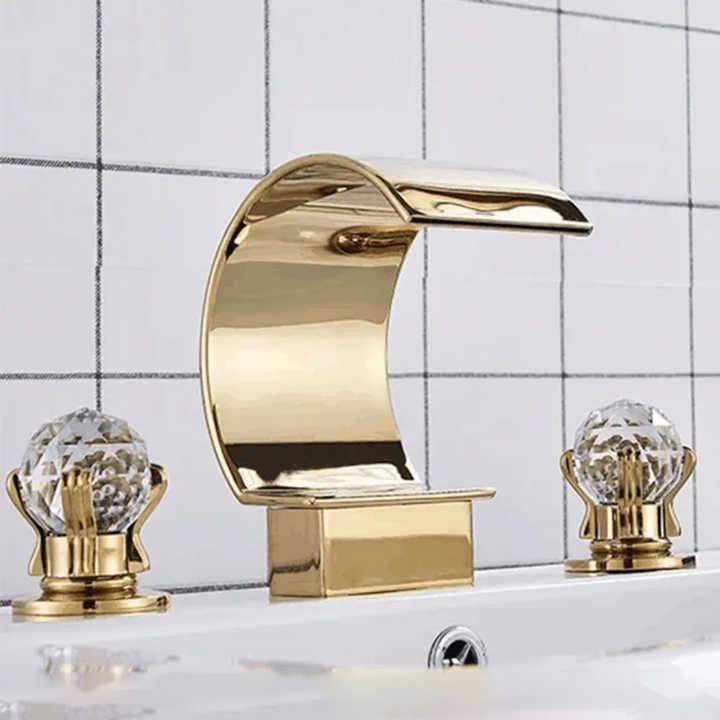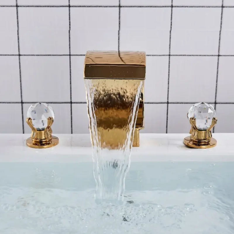 De luxe Cascade Double Cristal Poignée Or Baignoire robinet pont monté trois trou 3 pièce large angle De Bain baignoire Robinets ensemble