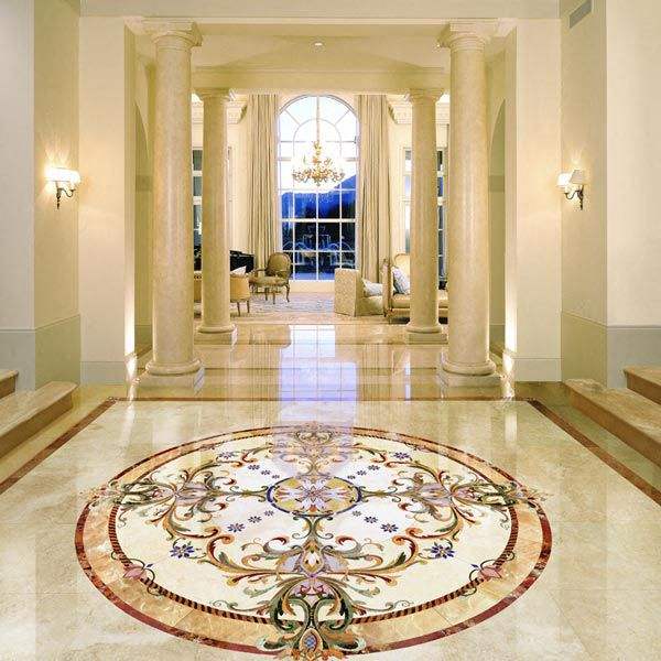 Carreaux de sol décoratifs de luxe, imperméables, en marbre avec incrustations de laiton, design méditerranéen artisanal, pour salon, hôtel, hôpital