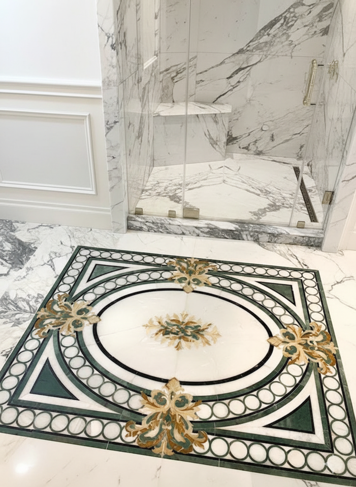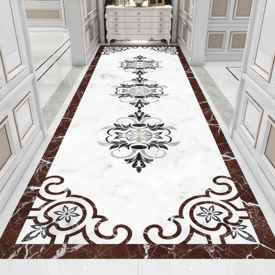 Carreaux de sol décoratifs antidérapants de luxe, étanches, en marbre méditerranéen incrusté, faits à la main, installation flottante pour salon