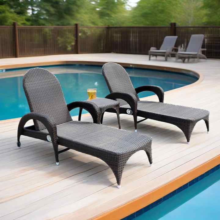 Ensemble de chaises longues de jardin en rotin tressé imperméable de luxe, très résistantes, pour extérieur, plage, piscine, cour et hôtel