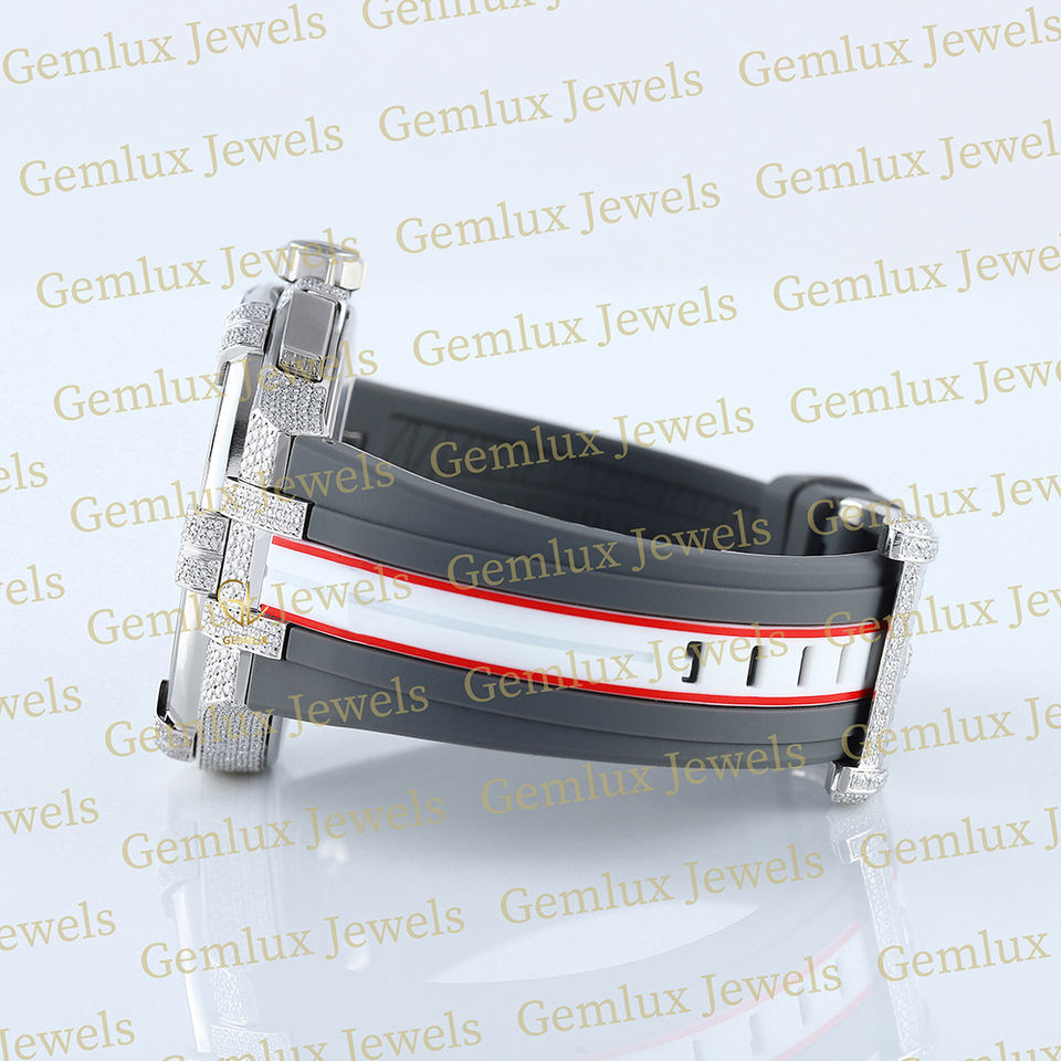 Vêtements de luxe best-seller Chronographe D VVS Moissanite Diamant Cadran Blanc Mouvement automatique Bracelet en caoutchouc gris Montre pour hommes
