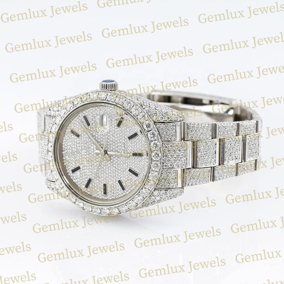 Testeur de diamant de passe d'usure de luxe entièrement blanc D VVS entièrement glacé Moissanite diamant mouvement automatique montre Hip Hop pour hommes