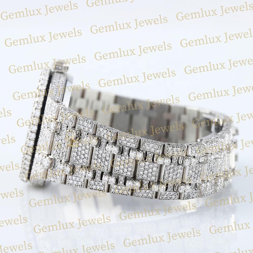 Testeur de diamant de passe d'usure de luxe Mouvement automatique Cadran arabe D VVS Entièrement glacé Moissanite Diamant Blanc complet Montre Hip Hop