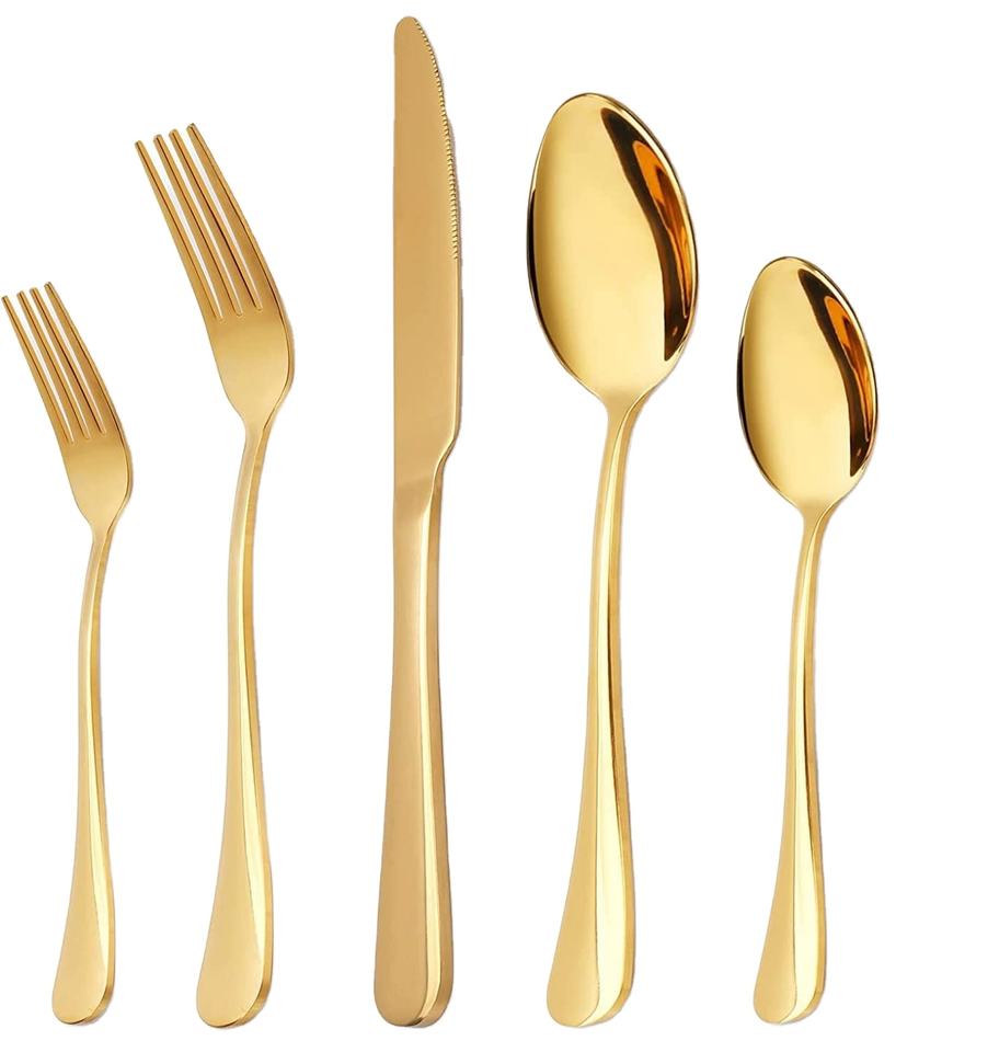 Jeu de couverts en or pour mariage de luxe OEM ODM kit de couverts en or tendance personnalisé couverts pour la décoration de la table du dîner
