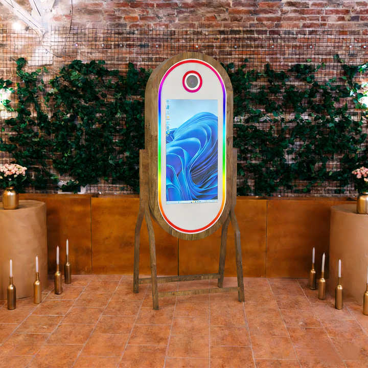 Photomaton de mariage de luxe - Miroir magique en bois massif avec écran tactile de 32 pouces et imprimante professionnelle