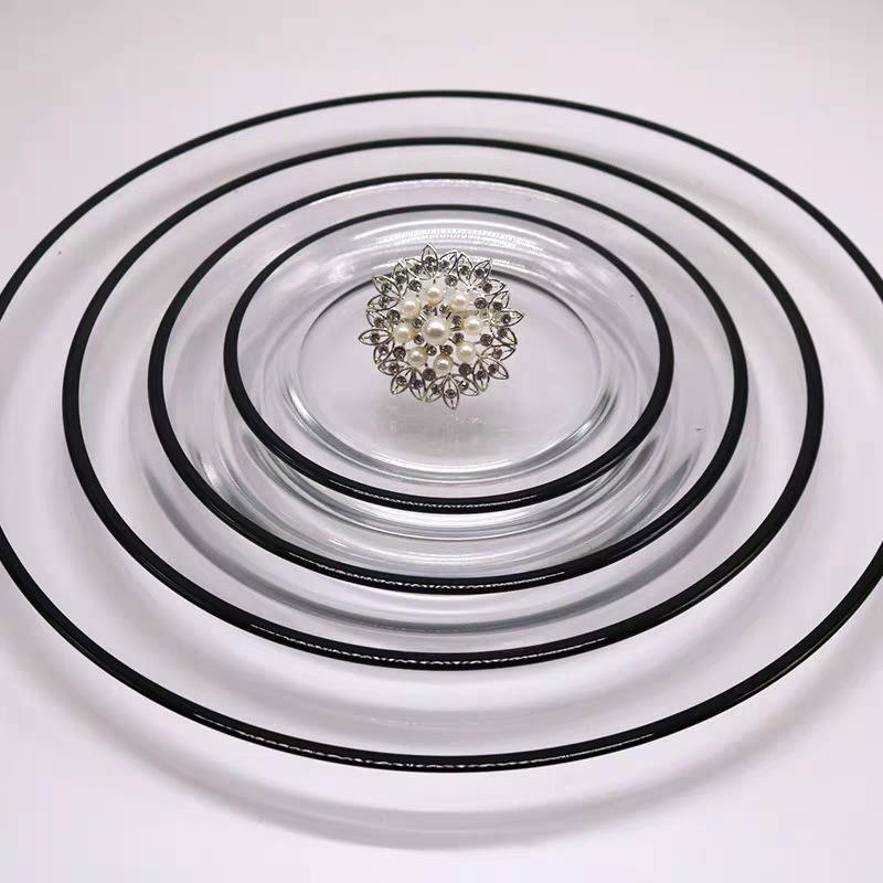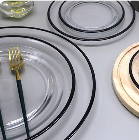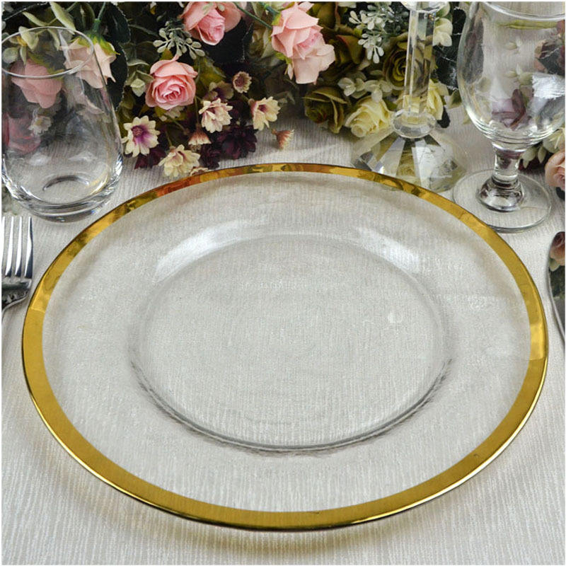 Luxury Western Table Mat Glass Charger Plates Wholesale Transparent Gold & Black For Party Occasions