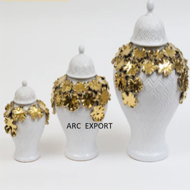 Design de luxe blanc décoration fantaisie couleur blanche moderne avec design doré pot de styliste élégant