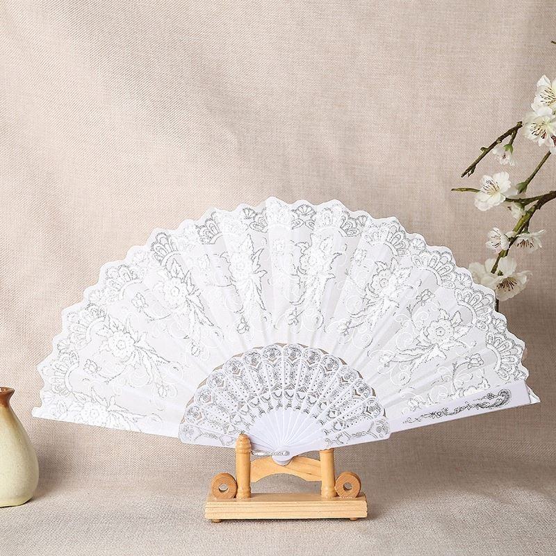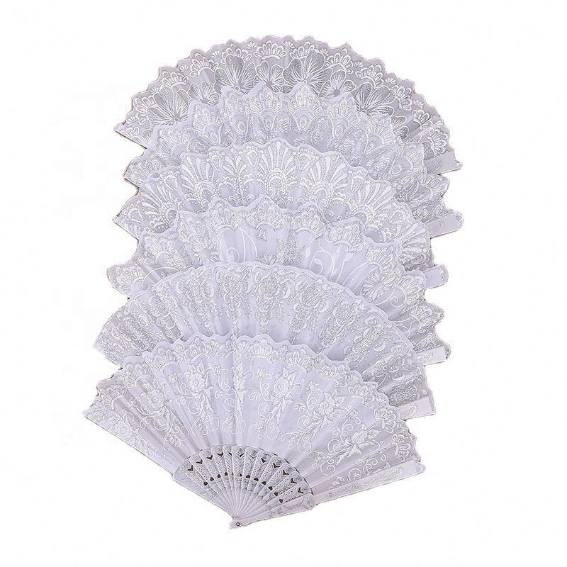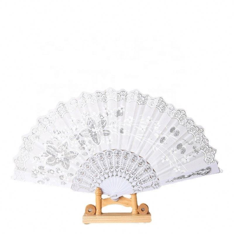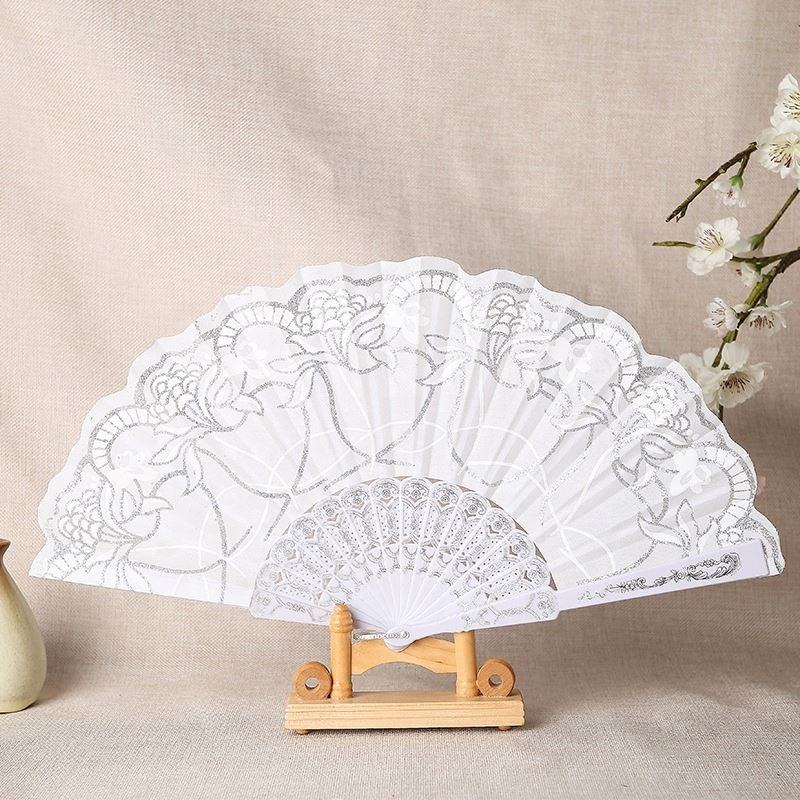 Luxury White Silver Fabric Folding FanProduct name