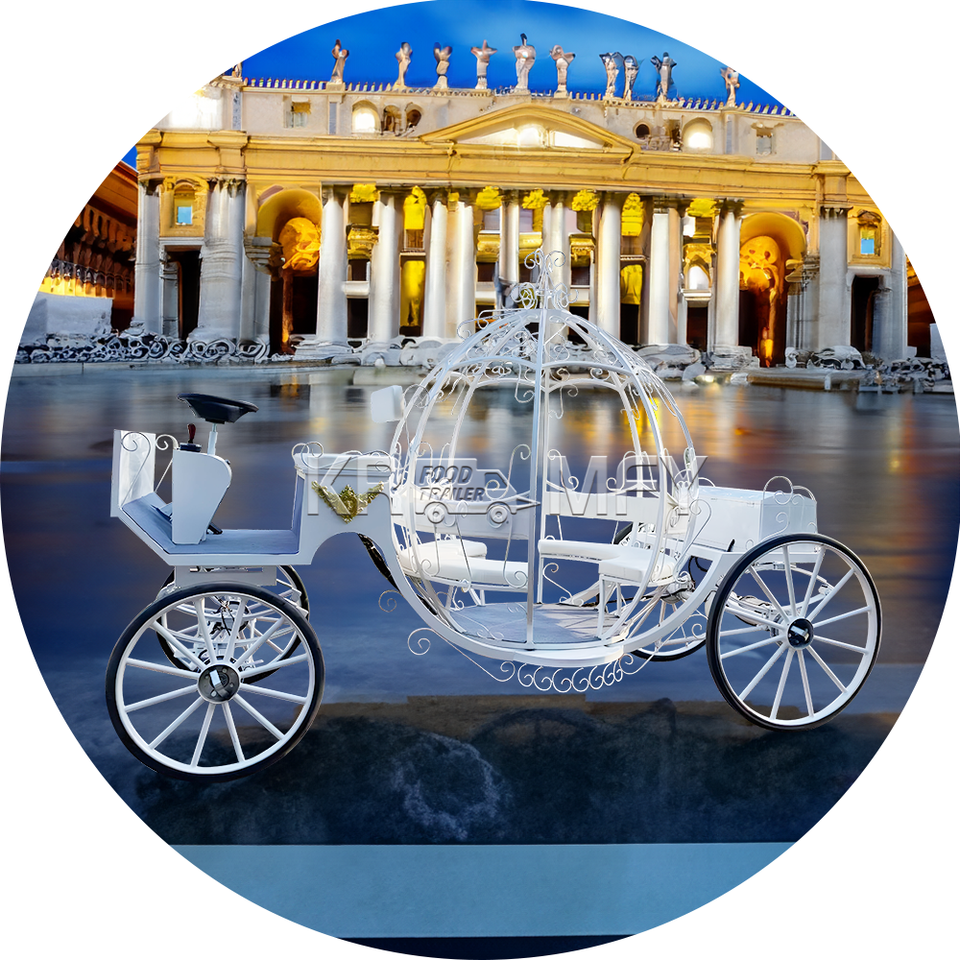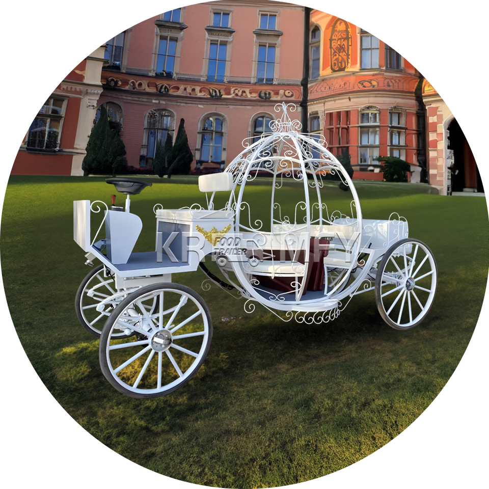 Luxury White Wedding Horse Drawn Carriage 4-Wheel Mobile Pumpkin Cinderella Carriage Special Transportation