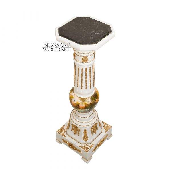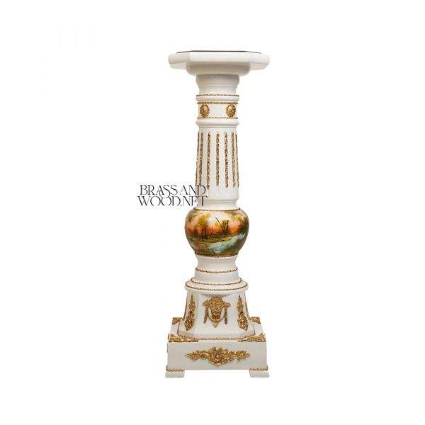 Luxury White Wooden Decorative Column Pedestal