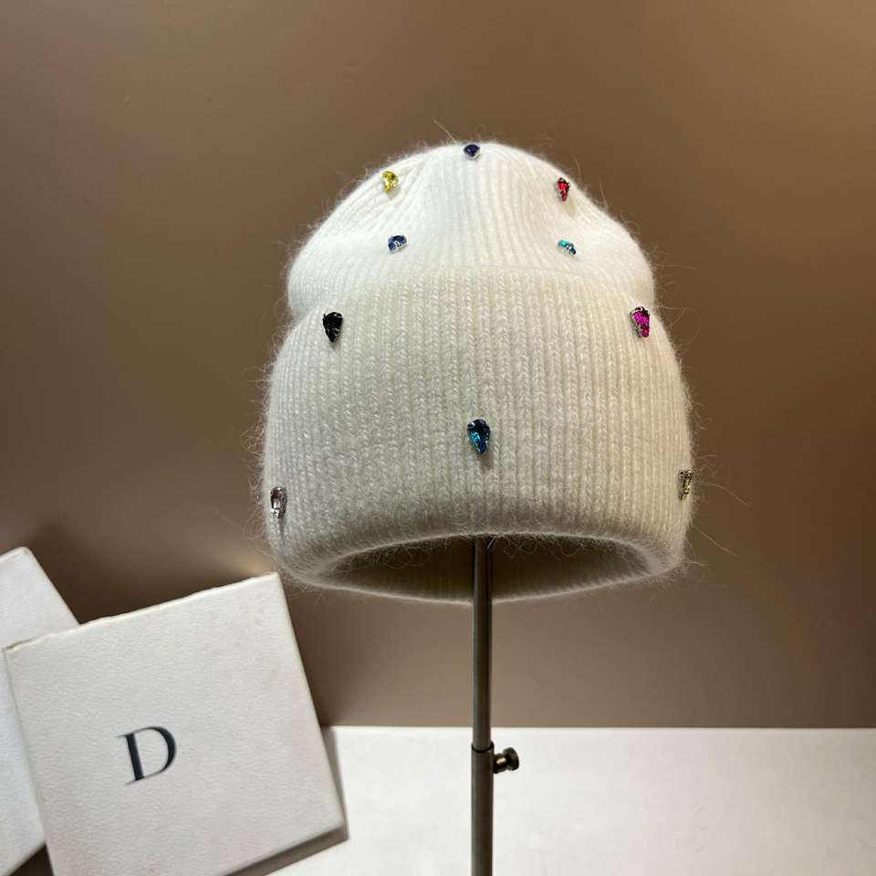 Bonnet en fourrure de lapin artificielle d'hiver de luxe, tricoté, chaud, doux, en laine, avec strass, élégant, bonnet pour jeunes, vente en gros