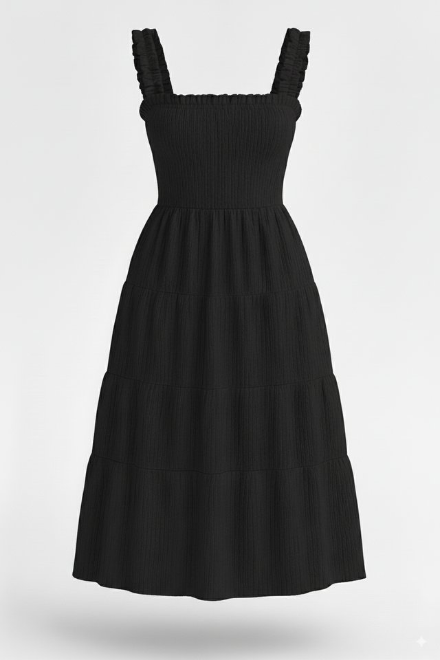 Luxury Women Smocked Bodice Tiered Knee-Length Beading Short Stretch Summer Dress A-Line Silhouette Factory Direct Wholesale
