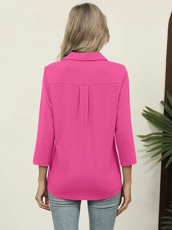 Luxury Women's 3/4 Sleeve V-Neck Collared Blouse Sophisticated Loose Fit Business Office Top OEM/ODM Custom Branding