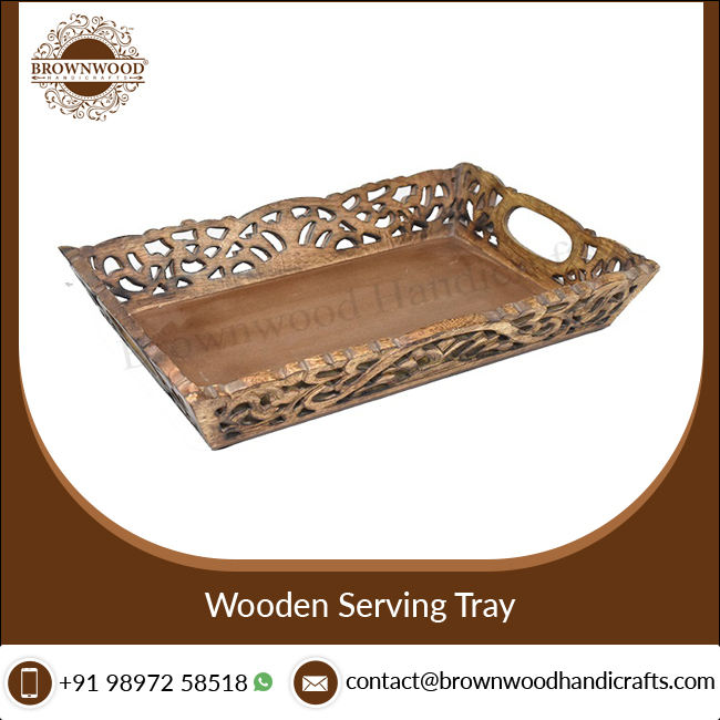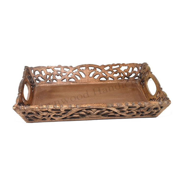 Plateau de service sculpté à la main en bois avec poignéesNom du produit