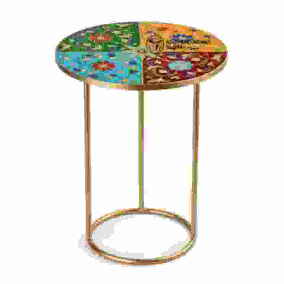 Table avec incrustations d'émail et d'autocollants