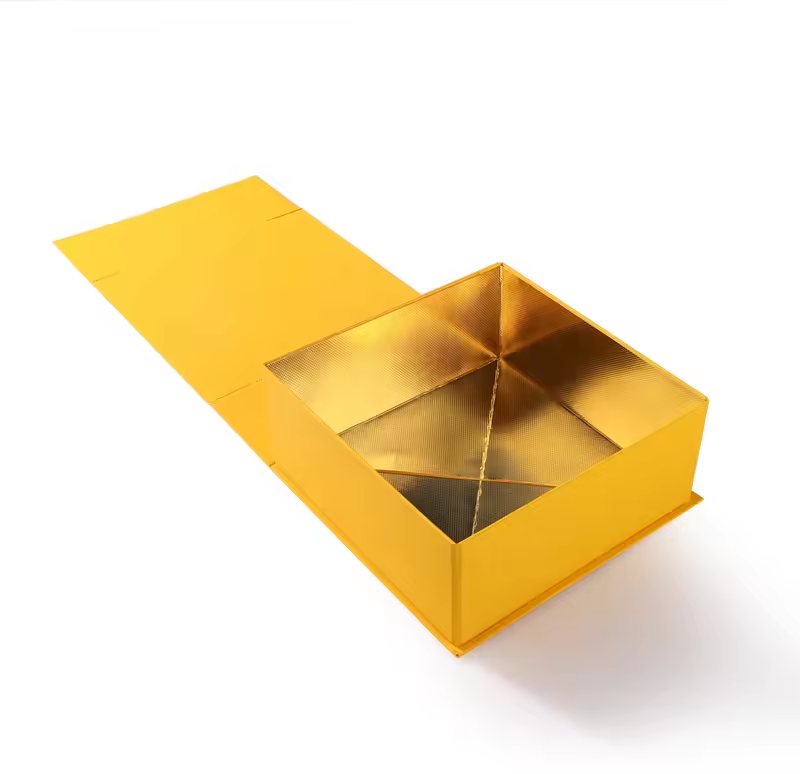 Luxury Yellow Foldable Gift Box High Quality Magnetic Closure Gold Interior Matt Lamination Embossing UV Coating Recycled