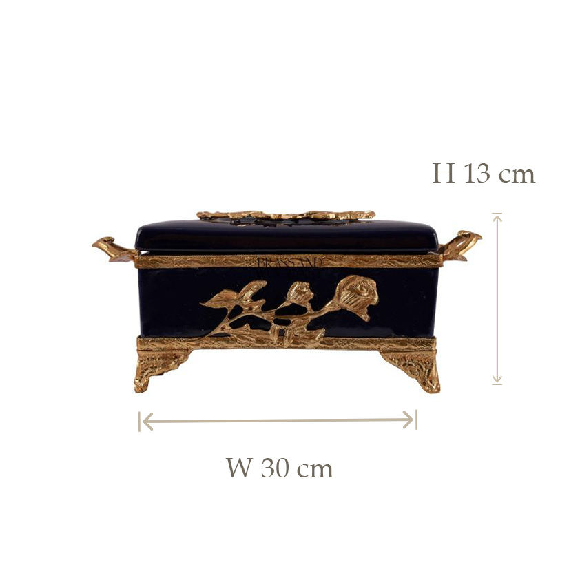 Luxury antique brass and black tissue box with handmade golden decorative details and classic rectangular design