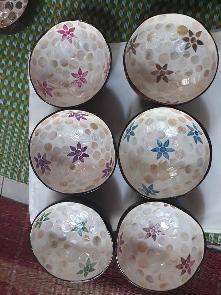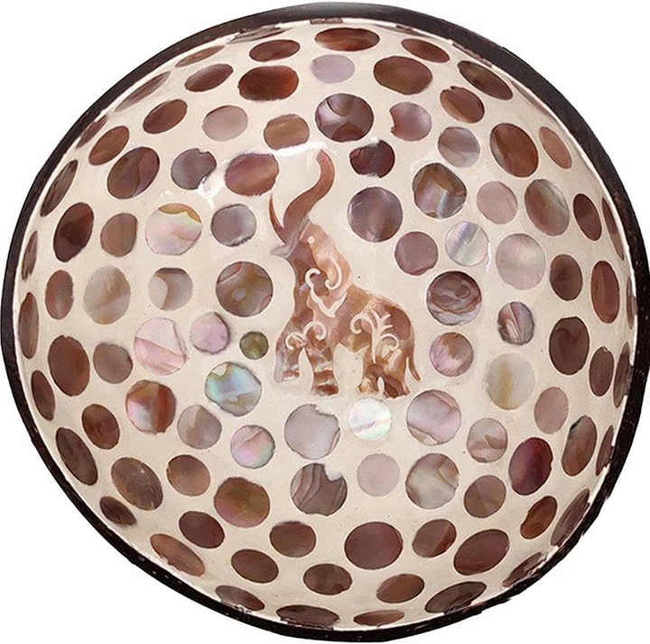 Luxury bamboo coconut bowl with mother of pearl lacquer for serving food decor gifts handmade eco material crafted in Vietnam