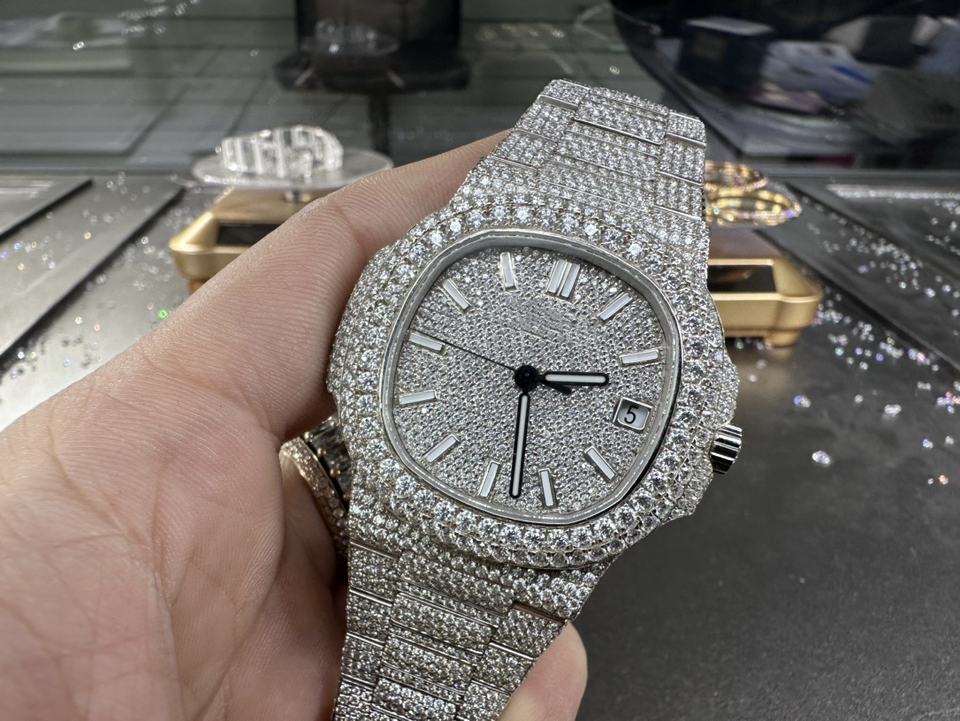 Montre de luxe personnalisée Super qualité VVS diamant PP étanche 41mm ETA 324 mouvement lumineux VVS plein diamant glace moissanite montre