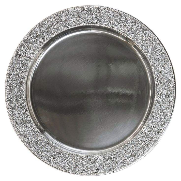 Table à manger décorative de luxe avec élégante plaque de présentation ronde en métal poli argenté pour les mariages