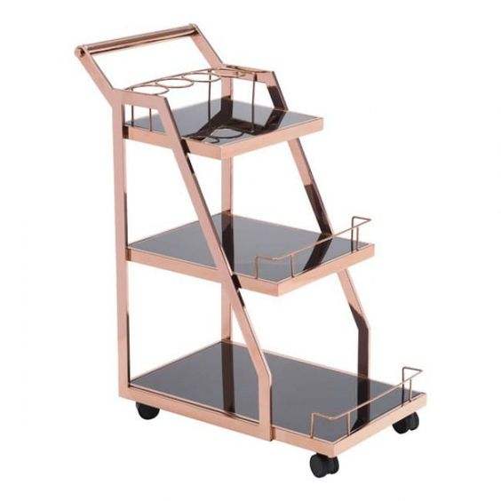 Chariot de service alimentaire de luxe en forme personnalisée Salves en verre fini doré Chariot de service au prix de gros