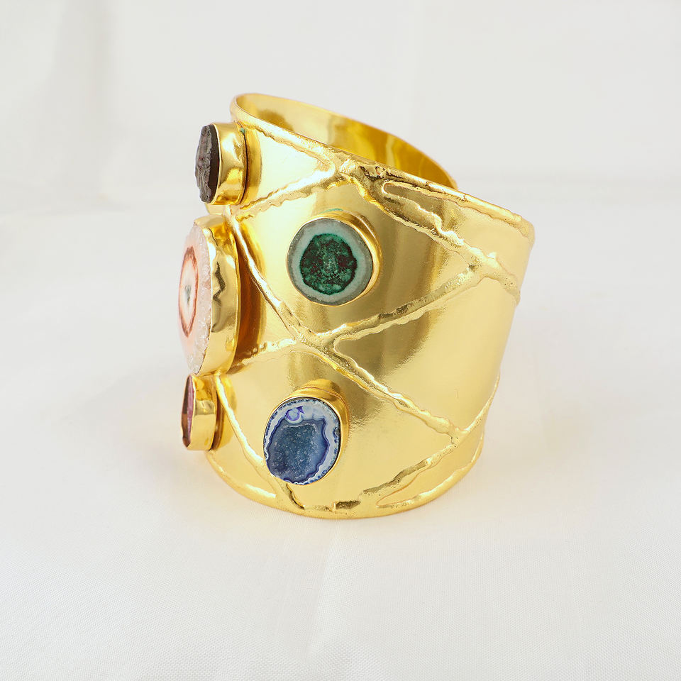 Stone:Solar Quartz, Geode Druzy, Raw Turquoise, Raw Garnet