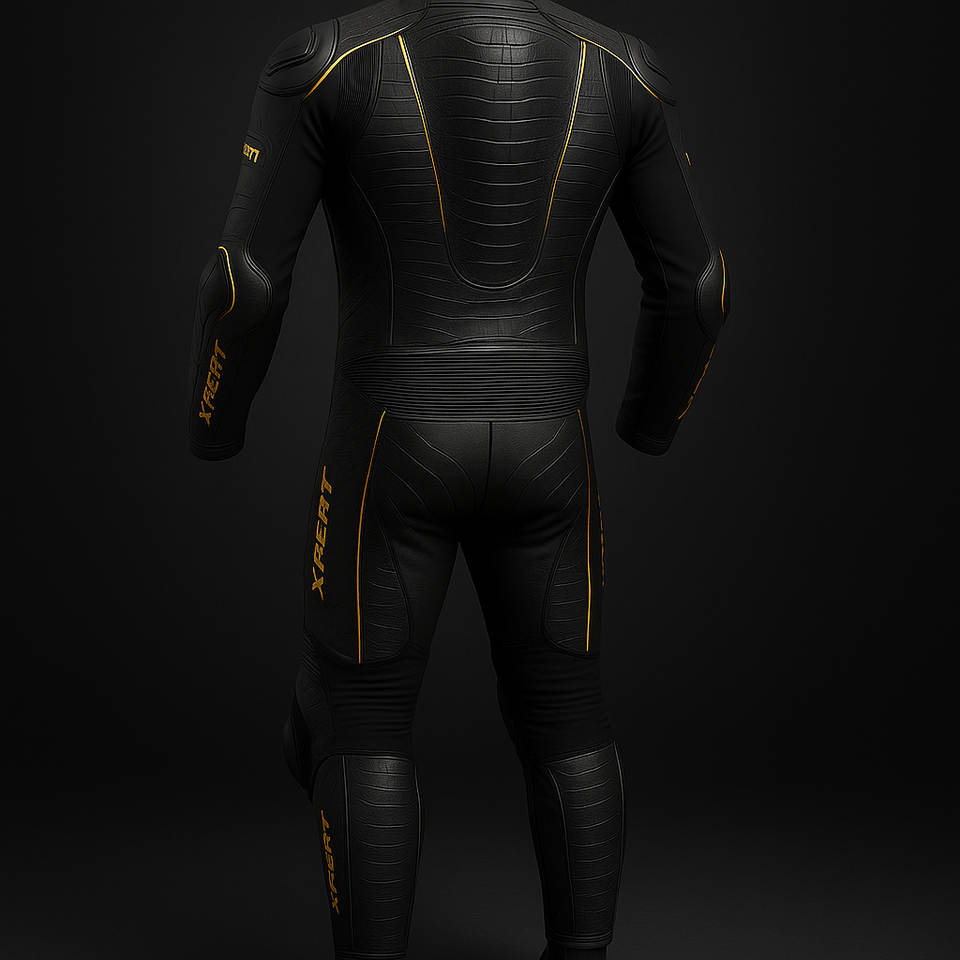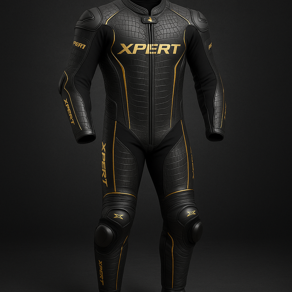 Combinaison de moto en cuir à motifs de luxe | Édition spéciale Xpert avec détails dorés personnalisés | Vrai cuir de vache | Broderie 3D |