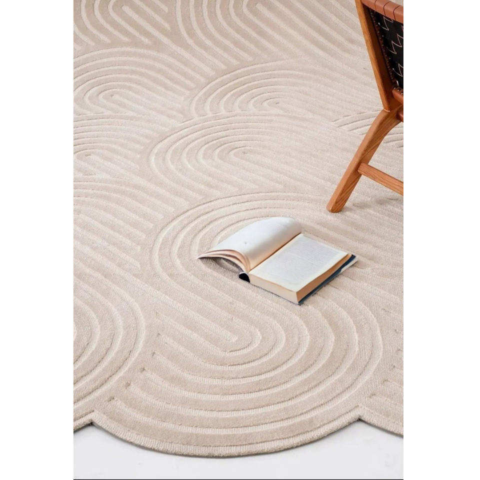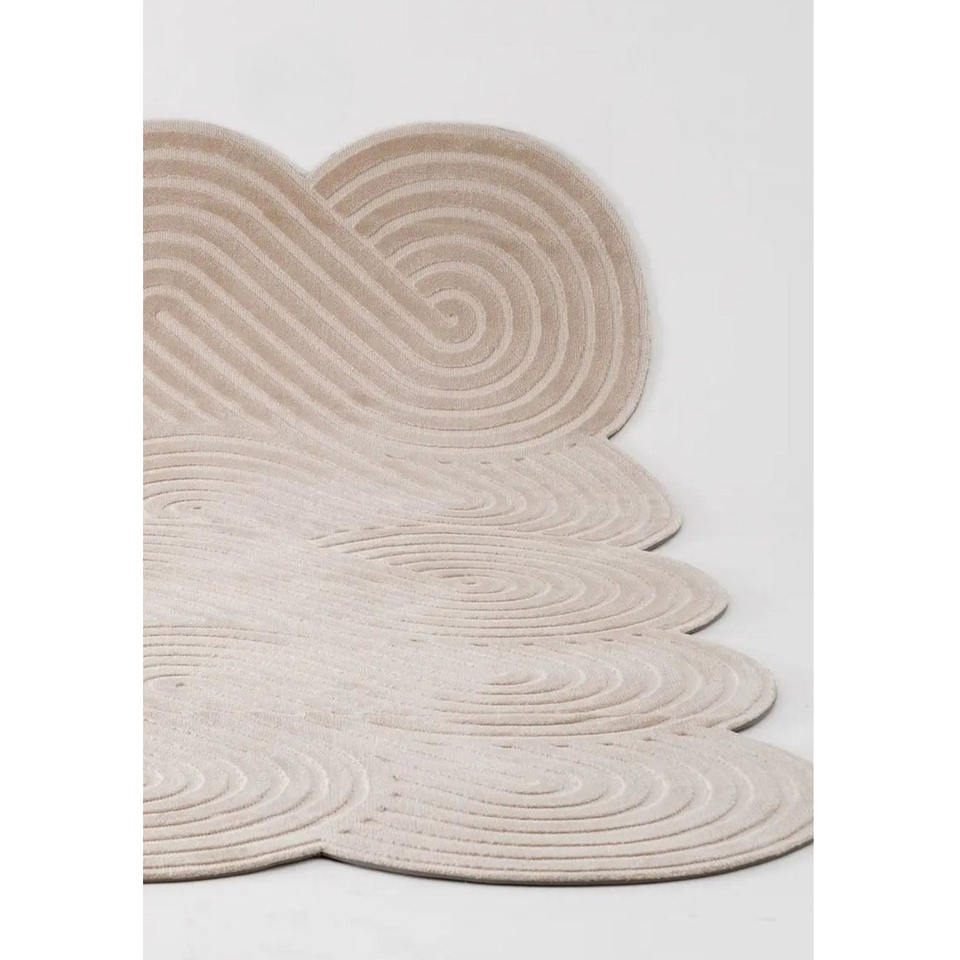 Tapis en laine de luxe fait main motif nuage moderne sculpté beige ivoire motif pétoncle tapis de zone à poils hauts et bas