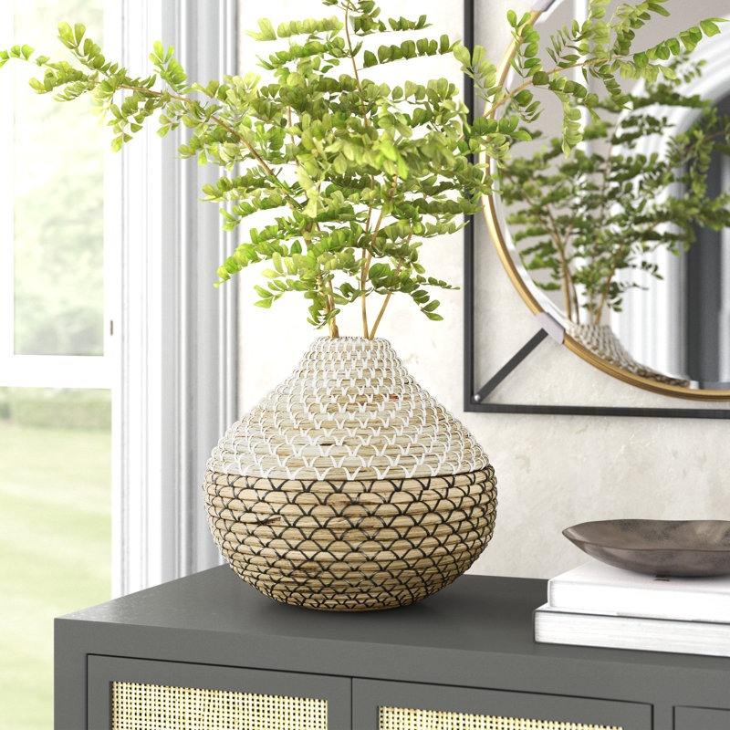 Luxury home decor handwoven seagrass vase outdoor indoor sustainable straw vases for dried flowers