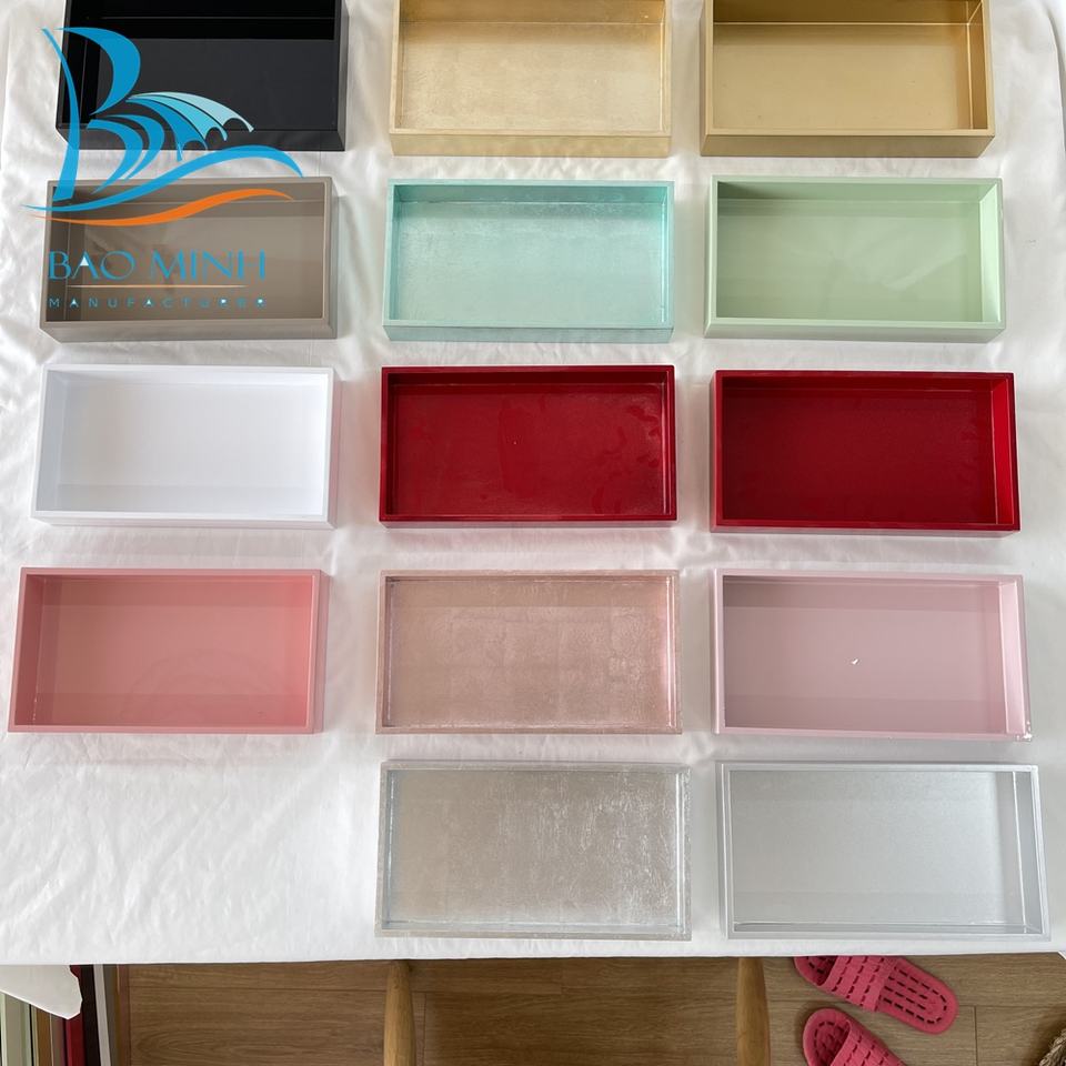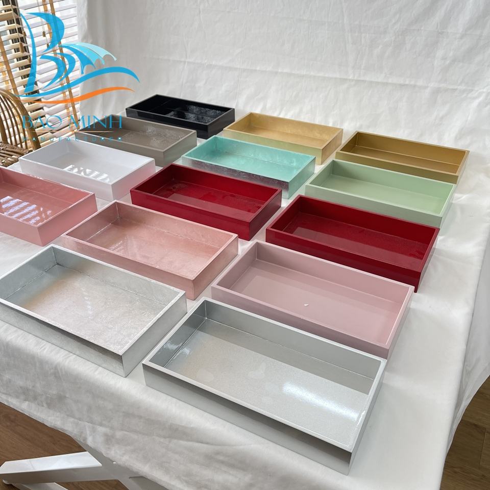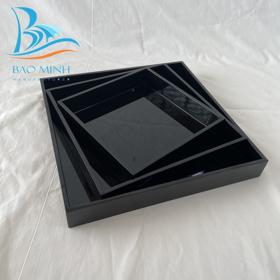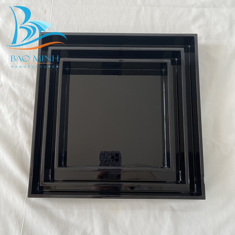 Ensemble de plateaux de service en laque gaufrée de luxe pour Thanksgiving, 3 tailles carrées (40x40 30x30), noir, Bao Minh Linda 2410 Vietnam