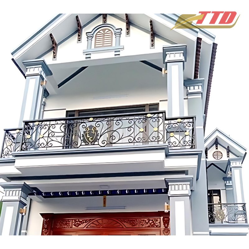 Luxury iron balcony railing handcrafted in Vietnam from 100 percent ingredients with decorative motifs for refined architecture