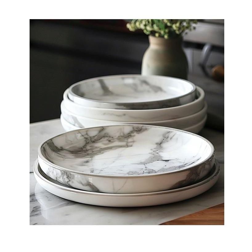 Ensemble d'assiettes en marbre de luxe pour la table à manger de la cuisine servant de la pierre naturelle polie et fabriquée à la main, design unique décoratif élégant