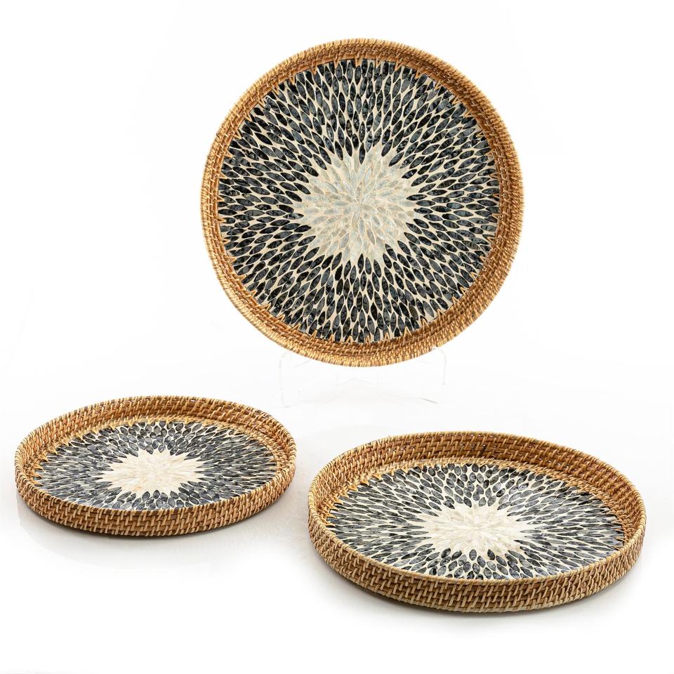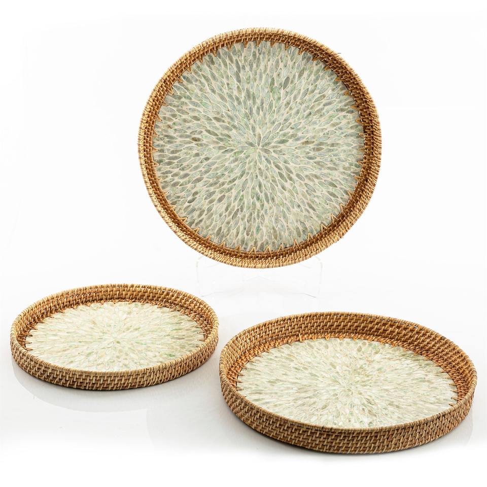 Luxury rattan MOP inlay trays various designs handmade mother of pearl trays shell platter
