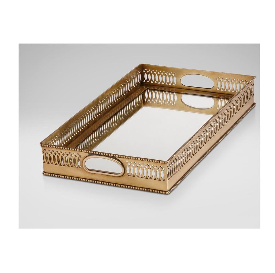 Plateau rectangulaire en métal miroir de luxe pour centre de table, coiffeuse et décoration intérieure avec finition réfléchissante élégante