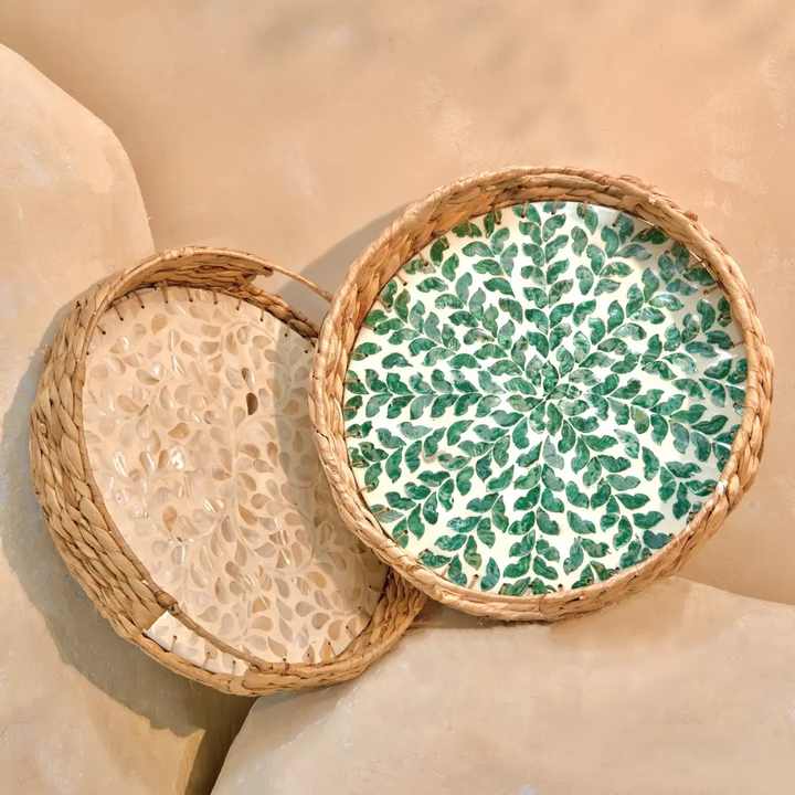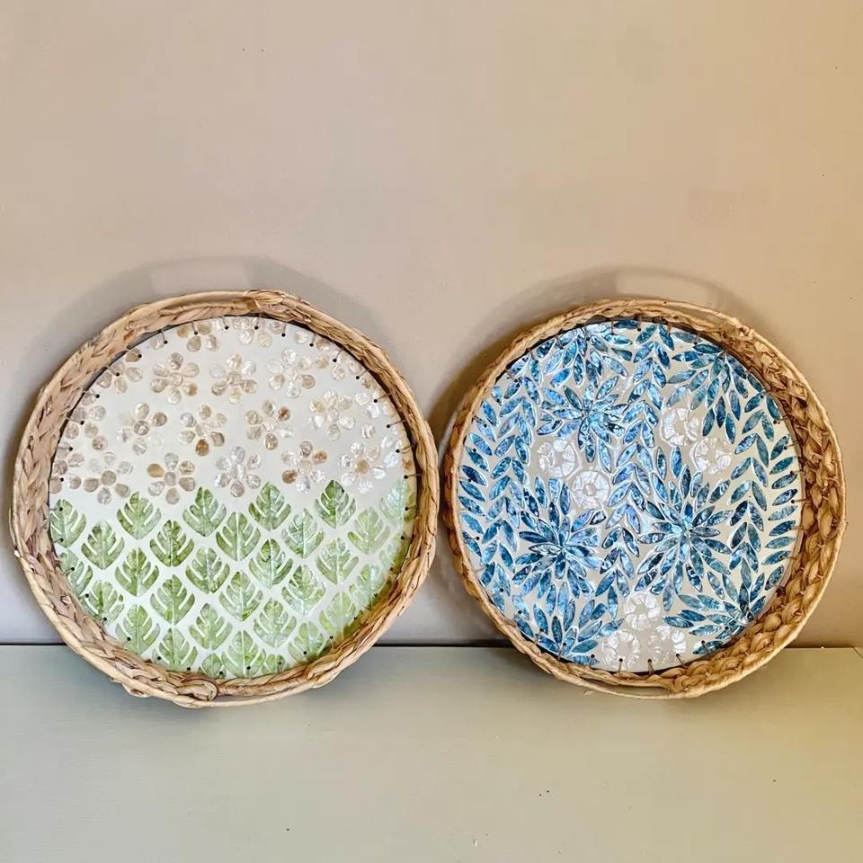Luxury woven hyacinth tray with mother of pearls inlaid new design unique style best home decor cheapest price