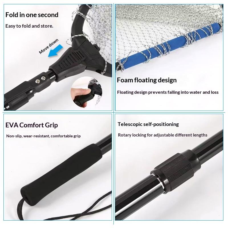 Épuisette flottante Luya en alliage d'aluminium télescopique portable pliable de conception triangulaire qui ne blesse pas les poissons, épuisette géante pour poissons